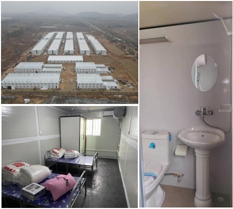 “越是艱難,越要咬緊牙關(guān)挺過去”,項目現(xiàn)場負(fù)責(zé)人說。在施工、采購、調(diào)度各環(huán)節(jié),國資集團不斷創(chuàng)新,會同各參建單位想盡一切辦法為項目建設(shè)提速,截至2月19日,準(zhǔn)備區(qū)折疊房、緩沖區(qū)活動板房、隔離區(qū)打包房、污水處理點用房已安裝完成,室內(nèi)水電、家具、電器已完成90%,室外附屬工程已基本完成。已建成的折疊房和打包房,配備了空調(diào)、熱水器、淋浴房、馬桶、洗手臺、床、被單、棉被、枕頭、桌子、凳子等,必需的生活配套一應(yīng)俱全。